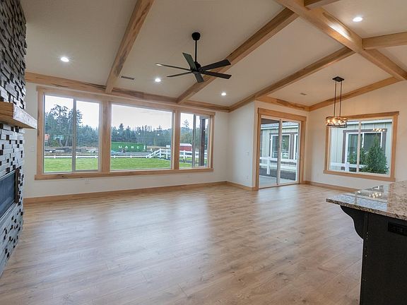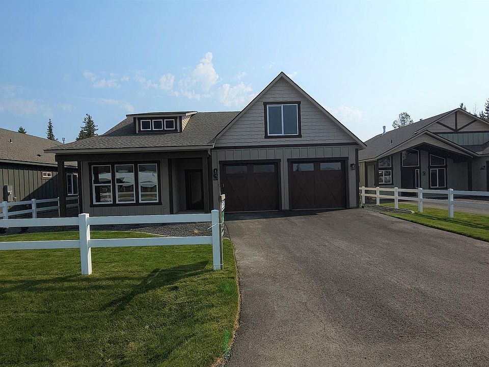 The Moose - Elevated Living in Sandpoint Expertly crafted for comfort and style, The Moose offers 2,492 sq ft of refined mountain living with 4 bedrooms, 3 bathrooms, and a 2-car garage. Designed for versatility, it features two elegant en suites—perfect for hosting guests, extended stays, or creating a private work-from-home retreat. Vaulted ceilings with wood-wrapped beams, luxury laminate plank flooring, and panoramic windows bring warmth and natural light throughout. The gourmet kitchen includes a large granite island, walk-in pantry, custom cabinetry, and GE Profile appliances. Enjoy a cozy gas fireplace, a retreat-style primary suite, and a landscaped lawn with sprinklers. Built with premium finishes and a 50-year composite shingle roof, this home blends durability with sophistication. Optional upgrade: 30×40 shop with or without ADU on select lots. Located in Sandpoint, close to outdoor recreation, dining, and downtown activities.