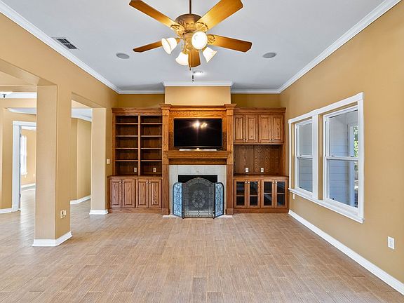 Charming Cottage in Spanish Woods. Tucked away on a peaceful cul-de-sac, this adorable cottage-style home at 113 Barcelona Drive welcomes you with an inviting covered front porch—perfect for relaxing and taking in the neighborhood charm. Inside, the split floor plan feels open and naturally bright, offering both comfort and functionality. The spacious living and dining areas are enhanced by a cozy fireplace and built-in bookshelves, creating the perfect spot to unwind or entertain. The kitchen features custom cabinetry and generous counter space, ideal for cooking, baking, and gathering. Guest bedrooms are comfortable and roomy. The primary retreat boasts a large walk in closet and private door to the porch and yard. Step through to the delightful screened-in porch—your new favorite place to enjoy morning coffee, reading, or quiet evenings surrounded by nature. An oversized attached garage with a workshop area provides ample space for hobbies, storage, or tinkering projects. The oversized yard is beautifully shaded with mature Live Oaks. This well-loved home blends character, comfort, and practicality in one inviting package. Come see why life in Spanish Woods is so special!
