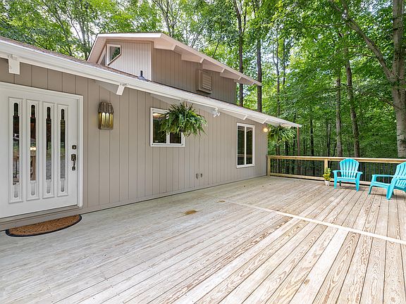 Architecturally distinct, this tri-level custom home was thoughtfully built by a civil engineer and showcases true craftsmanship throughout. Step inside and you'll immediately sense the story this home tells, the thoughtful quality in every detail, from soaring vaulted wood ceilings and exposed beams to rich wood walls, while a beautiful stone wood burning fireplace anchors the space with warmth and character. The open kitchen flows into the breakfast area and living room. Spacious game room with pool table, bar and fireplace is a great space for gatherings and making memories. Expansive decks overlook 2.5 wooded acres, where a gentle stream runs below, creating the privacy and feel of a mountain retreat. Enjoy this quiet neighborhood with no HOA or city taxes, all the while just minutes from the conveniences and amenities Cary, NC offers. This home is filled with history, heart, and versatility, ready for you to make it your own sanctuary.