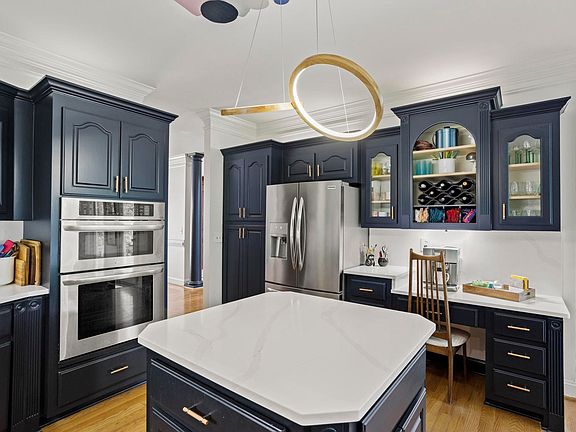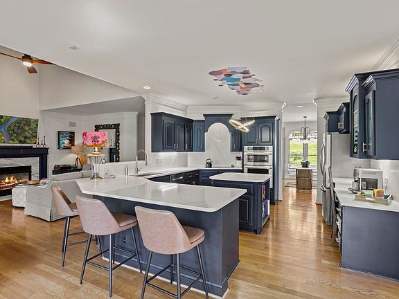 This 5-bedroom, 3.5-bath home in Berkshire Park is ABSOLUTELY BREATHTAKING! From its custom-built design to its picturesque surroundings, it offers a truly exceptional living experience. The meticulous attention to detail and quality craftsmanship is seen throughout the home. This home is so bright and airy with vaulted ceilings and windows galore! Every room offers a view of the 2nd green adding a touch of luxury and relaxation. The open floor plan and seamless flow of the home creates a space perfect for entertaining or cozying up by the gas fireplace. The kitchen is a chef's dream with new high end quartz countertops and backsplash, stainless steel appliances, a deep farmhouse sink, and tons of newly painted cabinet space. The large primary suite is located on the main level and offers space for a seating area, a custom shower, double vanity, and a spacious walk-in closet. The deck connected to the suite is perfect for morning coffee while enjoying the exceptional views. With two bedrooms sharing a jack and jill bath and an additional room offering versatility, the upstairs provides flexible living options to suit various needs. The basement serves as a recreational haven with custom built ins, a wet bar and space perfect for a pool or ping pong table. The additional bedroom/bath with a sauna adds a luxurious touch. The private office provides a dedicated workspace away from the main living areas. The unfinished 1000+ square foot workshop with HVAC is a dream for hobby enthusiasts, while the oversized garage on the main level offers ample space for vehicles and additional workshop area. Recent upgrades include 3 New HVAC units and a new tankless water heater (October 2023), new light fixtures and updated hardware, new carpet in the main living area, and new paint throughout the home. With its array of high end features and desirable location, this gorgeous home is sure to attract attention. Don't miss the chance to schedule a private tour today!