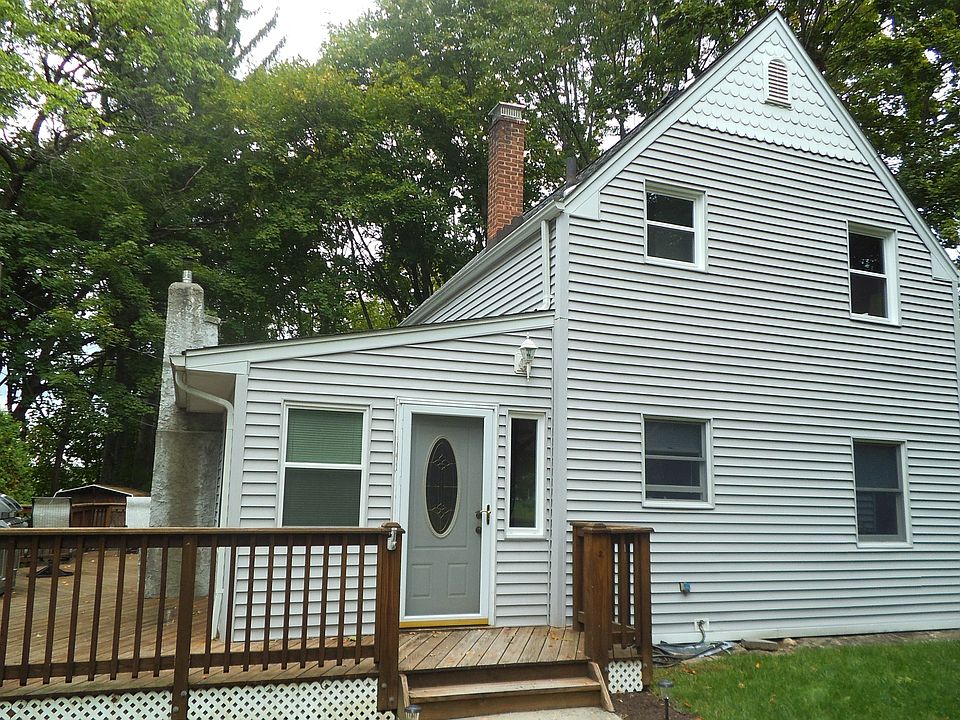 LIGHT, BRIGHT, PRIVATE AND PEACEFUL - THIS CHARMING 3-BEDROOM, 2 FULL BATH HOME SITUATED ON .19 ACRE OF SECLUDED PROPERTY IS MOVE-IN READY. THE 1ST FLOOR OPEN LAYOUT WITH HARDWOOD FLOORS WILL NOT DISAPPOINT. A LARGE and UPDATED EIK, LR, and DR W/ PELLET STOVE, VAULTED CEILING AND SLIDING GLASS DOORS LEADS TO THE OVER-SIZED DECK - GREAT FOR ENTERTAINING! BUT THATS NOT ALL...THE MASTER BEDROOM WITH A VAULTED CEILING AND SKYLIGHT, 2 DOUBLE, CUSTOM CLOSETS and FULL BATHROOM WITH DUAL ENTRY ARE ALSO ON THE 1ST FLOOR. THE LAUNDRY AREA SEPARATES THE MBR FROM THE LIVING SPACE FOR ADDED PRIVACY AND CONVENIENCE. THE 2ND FLOOR OFFERS 2 BEDROOMS, STORAGE IN THE ATTIC/ADDED CLOSETS and FULL BATHROOM. MANY UPDATES COMPLETED WITHIN THE LAST 10 YEARS - ROOF/SIDING IN 2004, ANDERSON WINDOWS WERE INSTALLED IN 2012(EXCEPT KITCHEN-2002), FRESHLY PAINTED/NEW ROOF ON 1-CAR DETACHED GARAGE. SUPER CLEAN! EXPANSION POSSIBILITIES! YOU WILL TRULY APPRECIATE THE DETAILS AND CARE OF THIS HOME.