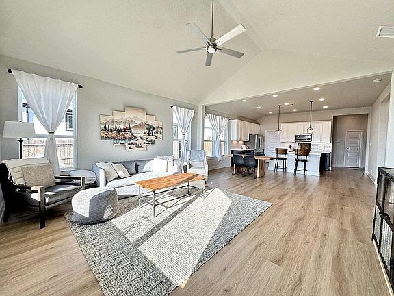 Open concept, single story home with 3 bedrooms, 2 baths, 3-car garage and flex room that can be used as a 4th bedroom, office or media room. The spacious yard has access to the greenway behind the property. Many large windows and the sizeable outdoor patio areas bring nature to the home. A chef’s dream kitchen, equipped with a large island, large walk-in pantry and stainless-steel appliances is adjacent to the living area making a perfect environment for entertaining. The primary suite features a vaulted ceiling, Texas-sized shower and huge walk-in closet. The 3 other bedrooms also feature walk-in closets and can accommodate a queen-sized bed comfortably. Connect to the tranquility outdoors with views out all the windows throughout of the greenway and trees. Located in the growing city of Cibolo. 15min to Randolph AFB. 30min to Fort Sam Houston/BAMC. 20 min to New Braunfels.