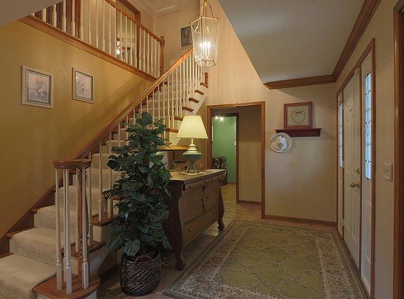 Fabulous 2-story w/1st flr master suite! Soaring ceilings thruout the 1st floor! Updated kitchen w/hrdwd, stainless steel & corian counters. Vaulted fam rm w/brick fireplace. Gorgeous formal living & dining rm. Master featuring newly renovated bath. Full finished bsmnt w/extra bdrm & full bath + plenty of storage! Wonderful screen-in porch & deck, awesome professional landscaping w/in-ground sprinklers system.