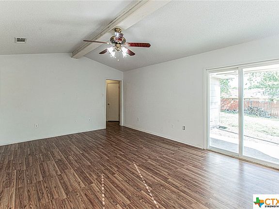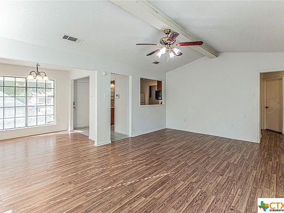 Step into this fantastic open concept 3 bedroom, 2 bathroom. The open primary living area has high ceilings, a fireplace and a kitchen pass through. The open living space could be great for entertaining. The primary bedroom has a tray ceiling and an en-suite bathroom. Don’t miss the newly installed laminate flooring throughout the primary living area and recently painted walls. The garage conversion provides a fantastic bonus living space! A fenced large back yard and covered patio could be a great spot for barbecues and chill-axing. Fantastic location for a quick commute to Ft. Cavazos or Austin. House is in a great location with nearby shopping, restaurants, entertainment and Copperas Cove City Park. Seller is offering up to a $5,000 towards closing costs.
