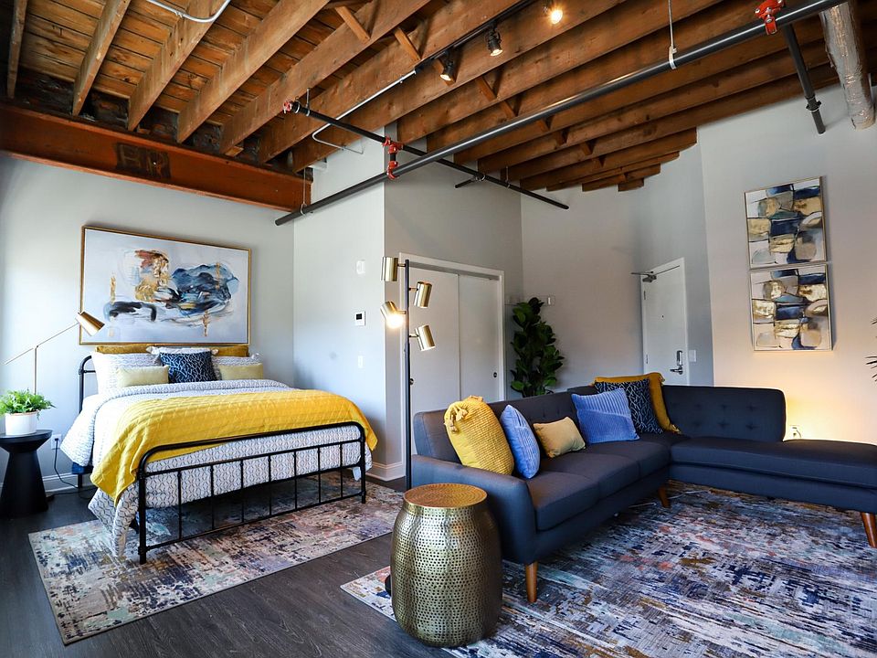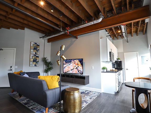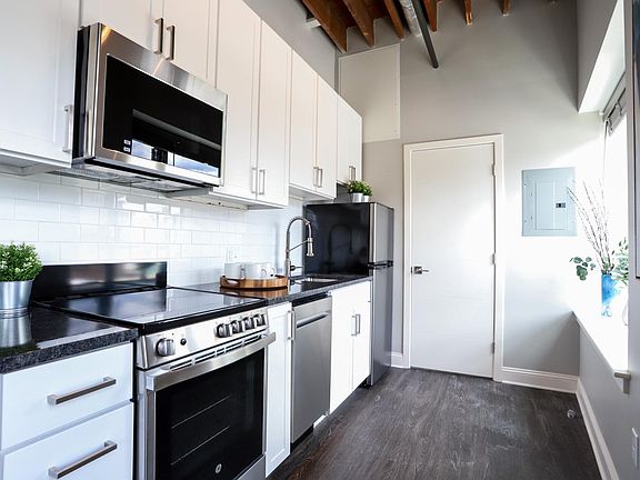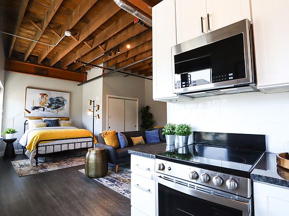 Glass showersExposed beamsGranite countertopsOpen concept studiosStainless steel appliancesIn-unit washers and dryersLarge windows