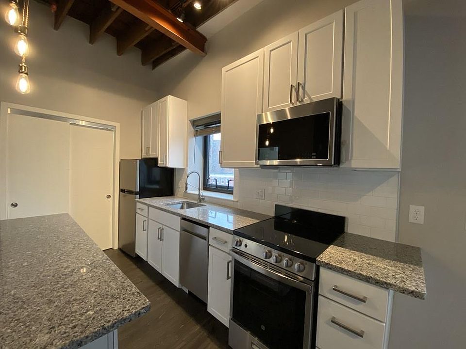 Loft apartment with high ceilings, exposed beams, and large windows. The open concept studios blend stainless steel appliances, granite countertops, tiled baths, glass showers and in-unit washers and dryers for a smart, efficient living environment. The building amenities boast a small fitness center, additional storage, and a rooftop deck with views of the ocean and city skyline. Located just minutes from North Shore Community College (NSCC), Nahant Beach, Lynn Beachwak, public transportation, and many of Lynn's local shops and restaurants. Tenant pays all utilities. No dogs. Cats OK. Household gross income requirements: $54,900 or higher. Move-in requirements: First, last month, full month broker fee = $4,575