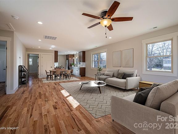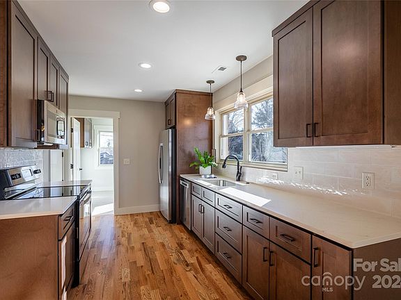 Whether looking for your new home or a great investment opportunity, this is a must see! Located in the heart of downtown Morganton and fully renovated from top to bottom. Main level features open concept floor plan; beautiful kitchen with quartz countertops, sleek subway tile backsplash, and plenty of storage. Primary suite includes two closets, linen storage and dual vanities in the bathroom. Two additional bedrooms, full hall bathroom, and mud/ laundry room complete this level. Basement level features flex space with wet bar, and office (or possible second primary suite) with exterior access. The basement would make a great guest suite or provide rental income. Ask your agent and lender for details on how this additional income could increase your buying power.