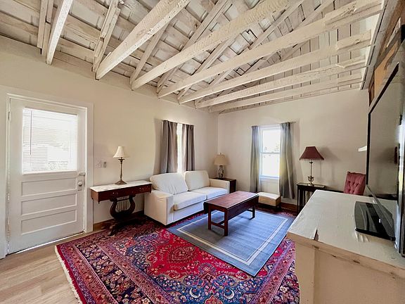 This property is a unique and versatile living space, perfectly blending functionality and comfort. The unconventional 40x30 metal structure offers a flexible layout, accommodating an office or bedroom suite, a full bath, and a kitchenette, making it an ideal choice for a home-based business or guest suite. Its impressive capacity can host three vehicles, eight positioned side by side, or even a boat, allowing for various storage solutions. Complementing this is a charming two-bedroom, two-bathroom cottage, which provides additional living quarters with its original structures antiquity is exposed and reveals semi historic features such as plank framing and original rough sawn members in living area and dining room, and a kitchen designed for both daily use and entertaining guests. All new stainless steel appliances, HVAC, roof, and hot water heater. The location, just under a mile from town in a serene area, offers the perfect blend of convenience and tranquility. Outdoor enthusiasts will appreciate the covered patio and fish pond, providing a peaceful retreat to enjoy a cold beverage after a long day. Recently updated, this property is a harmonious blend of practicality and charm, making it a truly remarkable find.
