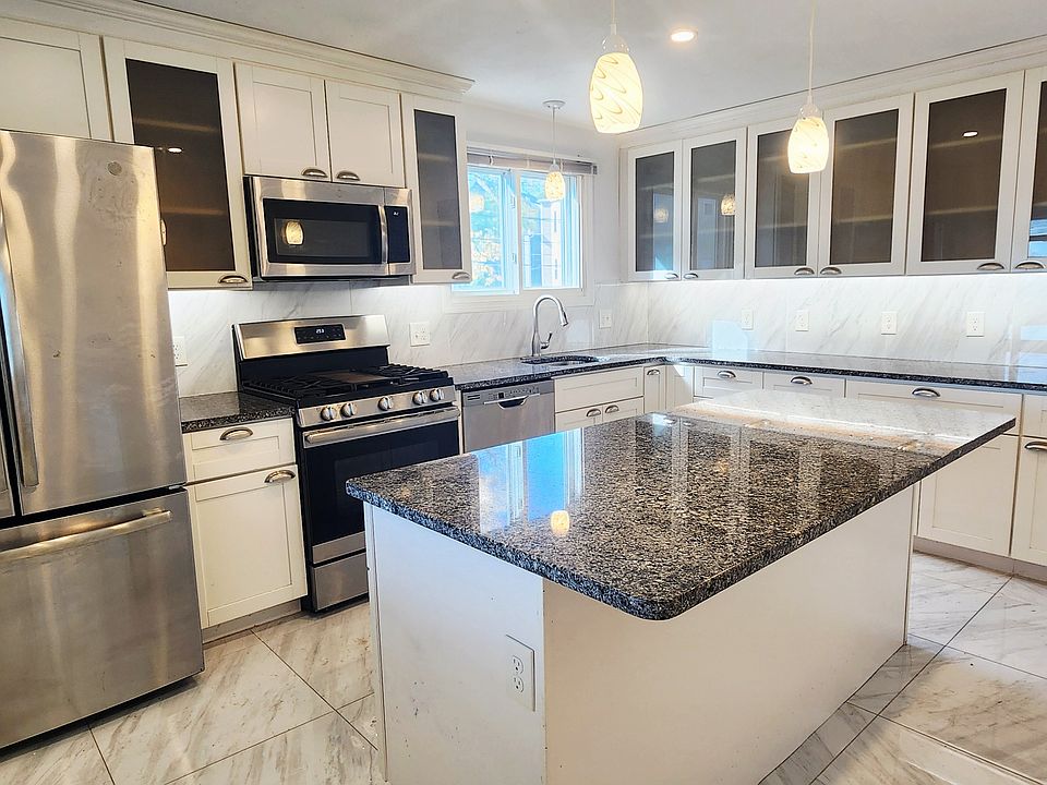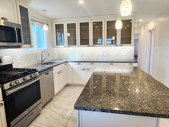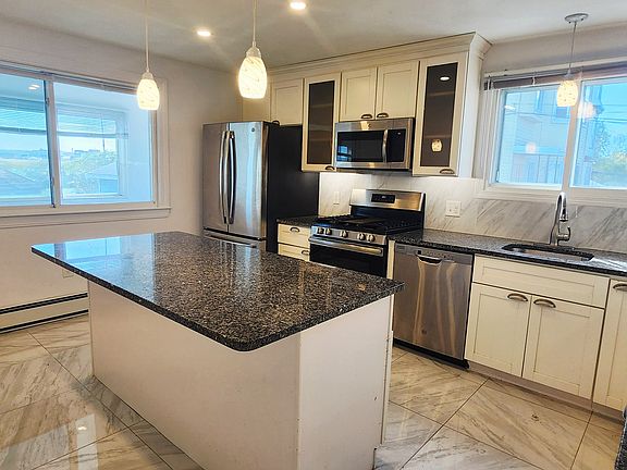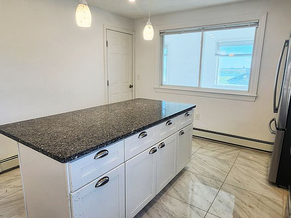 Available now for rent! Renovated apartment with 1 off-street parking near Wood Island T station in East Boston. This first floor, spacious 1300+ sqft, 3 bed 1 bath apartment features a modern chef's kitchen with tiled floors, granite counters and island, dishwasher, stainless steel appliances, plenty of cabinet space and windows overlooking the Boston Harbor. Other features include hardwood floors, tiled bathroom with stand-up shower, one large bedroom, one medium bedroom and one slightly smaller third bedroom, separate living room, shared coin op laundry in basement, 1 off-street parking space included, shared large backyard with gazebo and fenced yard with views of the airport and Boston skyline. Location is a very quiet and secluded, residential area of the neighborhood that is walking distance to the Blue Line (Wood Island T) with direct access to downtown Boston. Enjoy plenty of green space and walking paths with close proximity to Constitution Beach.