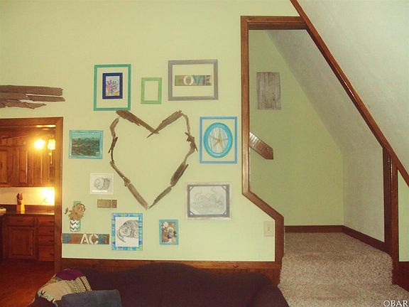 Beautiful home tucked in the woods of Colington Harbour. This A-Frame boasts 3 bedrooms, 2 bathrooms, an open kitchen and gorgeous beamed ceilings in the living area. Authentic wood features throughout the home and a wood stove in the living room make this home cozy and unique. One car detached garage and plenty of parking! It is currently long-term tenant occupied making $1,200 per month! Instant Cash Flow!