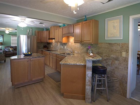 Coastal Living at its Finest – West of the Trail, Nokomis. Thoughtfully redesigned and fully renovated, this multigenerational 4 bed, 2 bath property offers two separate 2 bed/1 bath living quarters, perfect for hosting guests or providing private space for extended family. Inside, you’ll find a modern, thoughtful layout with premium finishes and timeless design elements throughout. The inviting screened porch captures a charming "peek-a-boo" view of the water! While outdoors you will find an expansive fenced yard, with multiple lounging spaces creating the ideal setting for year-round entertaining. The expansive 12 X 24 shed offers ample room for storage or transform it into a workshop. Enhanced with premium solar technology, the home delivers both luxury and efficiency, significantly reducing electric costs. Located just minutes from pristine Gulf beaches, walking-distance to waterfront dining and art galleries and surrounded by top-rated schools, this home embodies the best of Florida’s coastal living.