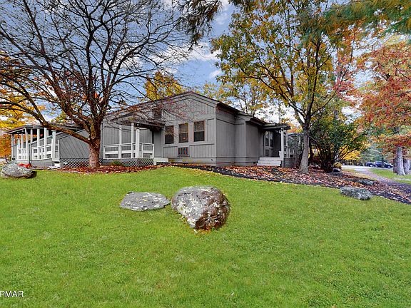 Everything you could want & more to enjoy Pocono living at its finest w/ this incredible home! Featuring high beamed ceilings, spot lighting, lux vinyl floors, & ductless split unit HVAC, a kitchen w/ high end cabinets, white quartz cntps, tile backsplash, & s.s appls; 2 spacious BRs w/ their own private deck& 2 ensuite tiled bathms w/ new showerheads & vanities that match its 3rd main bathrm & a large LVR w/ a stone veneer frplc
