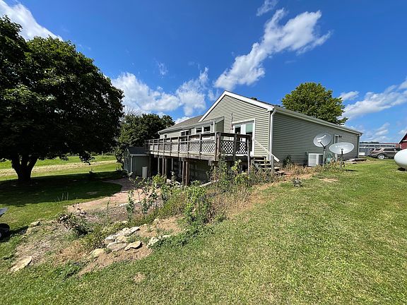 Farmette situated amongst rolling hills surrounded by timber and tillable tracts. This property has a lot to offer, with a nice ranch home sitting off the road up on the hill. Entering in the home, you have a nice open flow from the family room into the kitchen and dining area. On the main floor, you have two good-sized bedrooms and a full bathroom on that wing of the home. Off of the kitchen, you have another full bathroom. Access to the garage with a mudroom. Sliding door off of the family room that leads out to the large deck with beautiful views of the property. Finished lower level with a walkout that adds two additional bedrooms and full bathroom. Large rec room that could be used as another family/living room. Off to the side is your 25x27 barn/workshop. An additional barn (45x65) with fencing for animals that leads out to the pasture. 21x60 Lean that has plenty of room to park equipment. 3.5 acres of tillable are currently used for hay and 2.5 acres of pasture. The house has a new roof, siding, and gutters/downspouts. Newer flooring in most of the main floor.