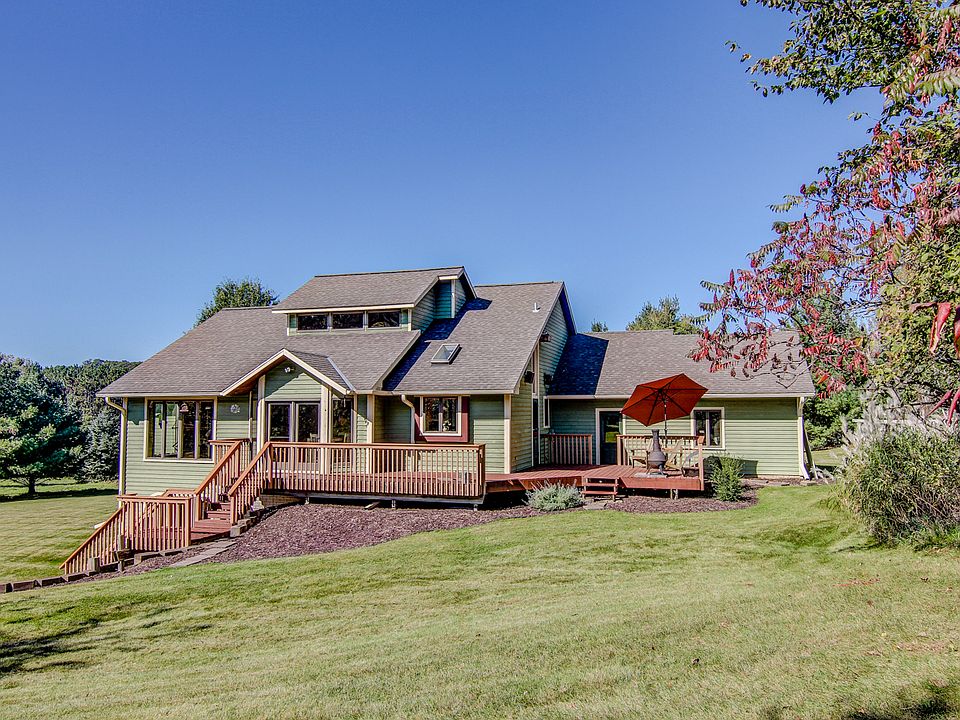 Country roads take you home to this quality built 3 bed, 3 bath home on 6.7 private acres. Featuring: new carpeting, crown molding, wainscoting, trim & solid doors, newly updated bathrooms w/ travertine tile, nickel faucets & Italian porcelain floors, an 8 person hot tub in a specifically designed room with air-to-air ventilation & cedar decking, 13x11 sunroom w/ beautiful brick floors, Anderson windows, 3 car garage w/ stairwell to the basement... Too many features to list! Must See Video!!!