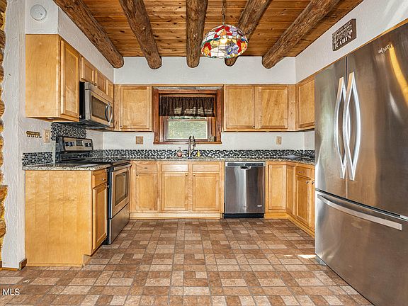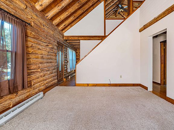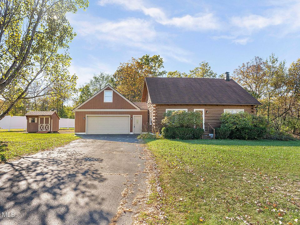 A lovely well taken care of log home located on a quiet tucked away neighborhood that offers privacy on just over 1 acre lot. This home is in move in condition and features all updated kitchen with SS appliances and granite counters. 1st Floor bedroom with a partially finished basement can both be used as a home office for the remote employees. Large 2 car garage with finished loft area above can also be used as a multi-use area or 4th bedroom, Solar panels owned by the seller features low electricity costs.