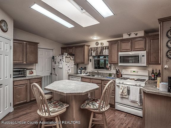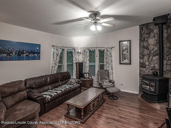 This is a must see home with an open floor plan. Lots of extras. Enjoy the back deck with views of Sierra Blanca. On the cool nights, enjoy the pellet stove in this Schult home on a permanent foundation. The 2 car garage has an electric door and access to the back deck.
