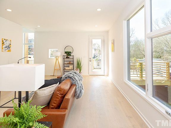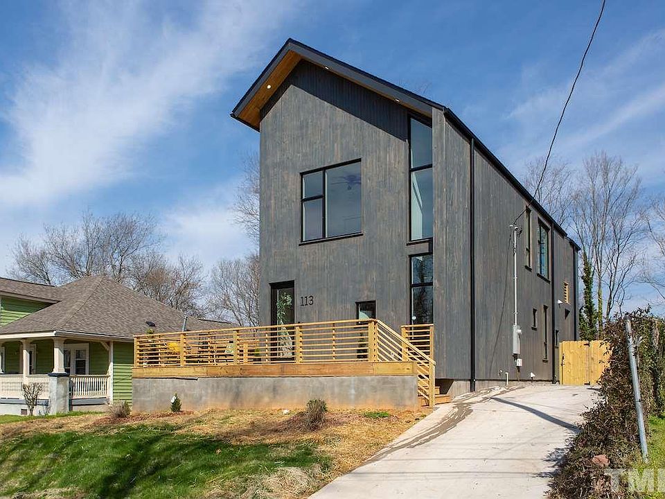 Contemporary home designed by Portland architect Mark Kuykendall to be bright and airy, yet still warm and inviting. Stained cypress siding with natural wood accents. Large & plentiful windows. Whitewashed European white oak floors. 10' ceilings. Covered decks on first and second floor. Huge front porch. Modern chef's kitchen. Large, flat fenced in lot. Catch the fireworks from your private master bedroom porch. Less than 1 mile to Bulls, DPAC, American Tobacco, Ponysaurus, Forest Hills Park. Must see!
