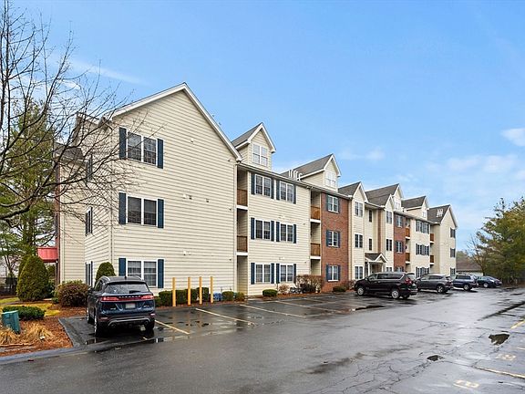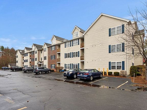 Well-maintained garden-style unit located in the sought-after 55+ Eagles Landing Complex. This is a second-floor corner unit and is handicap accessible via an elevator. This home boasts 2 bedrooms, 2 full baths, 1,072 sqft, and a 1-car garage, as well as an additional parking spot & plenty of guest parking. The unit features an open-concept floor plan, where the kitchen, living room, and dining area seamlessly flow into one another. The primary suite is generously sized and includes a 3/4 bath as well as a roomy walk-in closet. Additionally, the second bedroom also features a walk-in closet for added convenience. Off the living room, you will find a balcony—ideal for relaxing. In-unit washer and dryer included! Heating system and A/C were updated in 2022. The complex features a heated indoor pool, a clubhouse, and beautifully manicured grounds. The unit is conveniently located in close proximity to Rt. 495, Rt. 93, Treehouse Brewery & golf course, Market Basket, and other amenities.