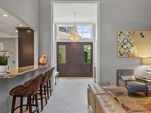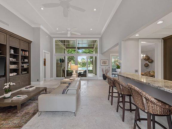 This exceptional 3-bedroom, 3.5-bath home situated on just under a half-acre, offers a stunning view of the 15th fairway. Throughout the home's open floor plan, you'll find custom features and luxurious finishes. The gourmet kitchen is outfitted with top-of-the-line appliances and includes custom cabinetry and an island designed for optimal organization. The spacious lanai features a gas fireplace and overlooks meticulously maintained grounds designed by an award-winning landscape architect. The outdoor area is showcased by a large infinity pool and firepit, offering an extraordinary area for relaxation and entertainment. This move-in ready home combines elegance, functionality, and beautiful outdoor views to create an unparalleled living experience.