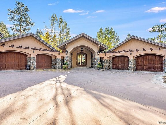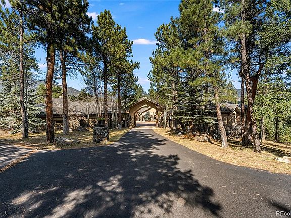 As you drive from Evergreen Lake along one of the most beautiful residential roads in America, Upper Bear Creek, you soon arrive at the gates of the distinctive Upper Bear Creek Ranch. Once inside the gates, you feel as if you have entered a private park in the foothills of the Rocky Mountains. Walking through the front door of this exquisite property, you have reached your destination, and it feels like home. Every room exudes beauty and warmth. You're overwhelmed at the detailed craftsmanship. This home is the result of a golf legends years of hard work, perseverance, and achievements. Some of the many features of this extraordinary 10,469 square foot, 6 bedroom, 9 bathroom, property are: 8.7 sprawling acres, 4100+bottle capacity wine cellar, gourmet kitchen, a beautiful water feature that can be heard from the master bedroom, butler's pantry, a full house generator, 8 person hot tub, library, office, large master suite, four indoor fireplaces, built-in Wolf BBQ, a stand-alone wood burning Argentine Asado BBQ, an outdoor stand-alone pizza oven, fire-pit, 10x24 Tuff Shed, hand hewn cherry hardwood floors, large windows with remote blinds, snow-capped mountain views, a gated courtyard with under surface heating, patios and an extensive veranda, bar, a nanny suite, and a wonderful guest house with walk out patio. Welcome to your final destination!