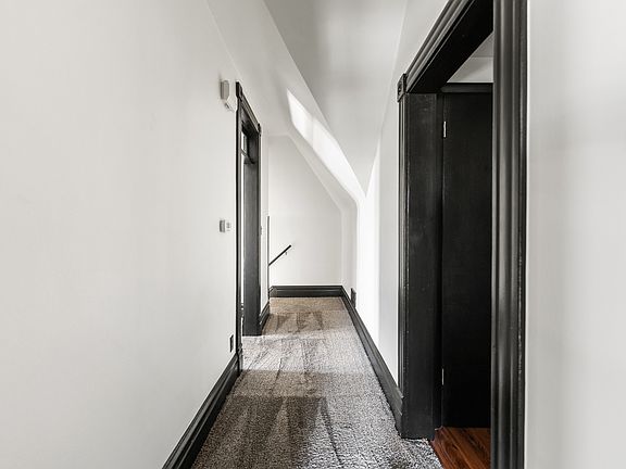 This beautifully renovated two-bedroom unit on the west side of Elgin is a perfect blend of old-world charm and modern updates. Nestled on the second floor of a character-filled building, the unit is accessed via a private staircase and offers a unique living experience. Newer carpet throughout, accented by striking black trim and custom details that run consistently through the entire space. The layout features a spacious primary bedroom and a versatile second room that can function as either a true second bedroom or a comfortable living room depending on your lifestyle needs. Antique transom windows above both doorways add a touch of vintage elegance and allow natural light to flow freely throughout the unit. The kitchen has a large layout with a window above the sink overlooking the peaceful backyard. Features include a dramatic black penny tile backsplash, a rustic wooden beam accent, and two generous pantry closets for storage. Modern light fixtures brighten every corner. The bathroom is equally impressive with black penny tile floors, a large tiled shower surround, and a frameless glass shower door that folds inward to maximize space. Outside, enjoy a large shared backyard shaded by mature trees. The setting feels private and tranquil, offering the best of residential living. The unit includes a dedicated driveway parking space, plus plenty of available street parking. Located just minutes from downtown Elgin, major expressways, the Metra train, and more-this rare gem combines convenience, comfort, and charm. Units like this don't come around often! Unit is available as of January 1st, 2026!