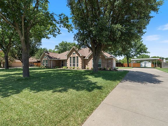 Welcome to this meticulously maintained custom 3-bedroom, 2-bathroom, 2-car garage home situated on a spacious 0.46 acre lot. NEW ROOF (GAF Timberline HDZ 30yr roof) as of October 2025. Other recent updates to this one owner home include a complete remodel of the primary bathroom, fresh paint throughout the interior, landscaping, new windows and a leaf filter system on the gutters. The location is perfect for the commuter or that person that enjoys fine dining and shopping, with Dallas only 20 minutes away. For the golf enthusiast, you're within 2 minutes of the Rustic Rail Golf Course. The home offers a flex room that can be used as a formal dining room, office, or library. Come make this room your room! No more slips or falls, this home offers a garage with epoxy flooring. The backyard is your own private oasis, boasting a covered patio, mature shade trees, a carpet of St. Augustine grass and a privacy fence, making for the perfect family gathering spot or hosting a party for friends. There's a shed complete with a concrete floor and garage door, for easy storage of your lawn and outdoor equipment. At the end of the driveway, there's a carport for that extra vehicle in your life. Small town living at its best!