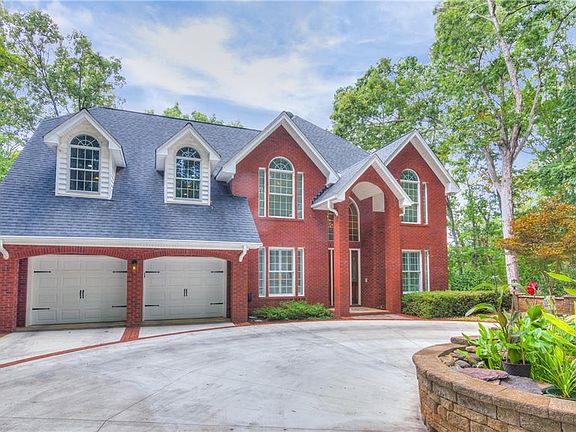 Beautiful waterfront brick home with deep water on Lake Hartwell! To make it easy to ready for your lake enjoyment, the sale includes: full size dock/60 foot ramp/boat lift, PWC lift and storage box. ...just load up the cooler and you are on your way down the concrete path. This home was designed to enjoy family and friends with lots of generous sized rooms and indoor/outdoor spaces for entertaining. Light and bright is the theme with high ceilings and lots of windows. Mosaic tile front porch, hand carved sold wood 8ft door with side lights, two story foyer, chandelier with electric motor to lower and raise, marble foyer, open dining and living room, Powder room centrally located. The Kitchen was designed for easy flow with two arched doorways to the Great room and another cased entry for the Dining room. Kitchen features ample counter space (solid surface) and lots of solid oak cabinets, triple bowl porcelain under mount sink, a center island with smooth cook top, storage and cantilever for bar stool, wall mounted TV, closet pantry, built-in refrigerator (2013 Samsung) with wine rack above, double convection ovens, bay breakfast area that leads to a screened porch with board walk tile. The grilling deck includes 6 person Saratoga spa (2002 Canfield, new cover in 2015). The Great room with 18 ft ceiling, floor to ceiling windows with electric blinds, electronics cabinets behind wall mounted 65" Samsung flat screen TV, masonry wood burning fireplace with gas start and glass doors. Laundry has built-in washer and dryer with folding counter, hanging racks, tiled floor with drain, door to the basement, door to the two-car garage, cabinets, and utility sink. Double doors open to the master, with new carpet in 2015 and features vented fireplace with gas logs, 11 ft ceiling, 3 piece crown molding with accent lighting, reading nook, door to deck, and a walk-in 5x17 closet. Double doors lead to a luxurious 10x15 bath, 9 ft ceiling, decretive trim accents, 3 piece crown molding, accent lights above the Pearl jetted tub and below the cabinets, double sinks, vanity (full width mirror), separate shower and water closet with bidet, and linen closet. The second floor includes carpeted game room with pool table, beautiful wood custom built-in display shelves and cabinets, storage closet, power room with wood grain tile floor, door access to floored attic. Office with 10 ft vault ceiling and hardwood floor. Two 16x11 carpeted bedrooms share jack-in-bath with privacy door to the tub/shower/toilet, double sinks, and beveled mirror. The stairs to the basement were hand planed from local pecan tree. An arched opening with one of a kind pecan shelf, tile landing that leads to 16x28 workshop with electric garage door or to the living space. This finished living space is plumbed as second Kitchen or Bar (utility sink and refrigerator in place), double doors to closet with washer/dryer connections, wood floor and French doors to covered patio. A fourth 15x15 bedroom, new carpet in 2015, walk-in closet, tray ceiling with accent lights in the 3 piece crown molding, and door to covered patio. Third full bath with tub/shower and wood grain tile floor and tile wainscoting. Heavy duty pull down stairs to floored attic space for additional storage. Flex space being used as a workout room with wall mounted TV, carpet and walk-in closet. Arched opening to the Family room has a masonry wood burning fireplace with gas logs, floor to ceiling rock surround and hearth, and exterior door. A fourth full bath with shower, wood grain tile floor, and pedestal sink with separate exterior and workshop/garage access. This workshop/garage has the mechanical room with drain, shelves, workbenches and storage. Note that this is the 3rd garage for parking the utility vehicle or golf cart.