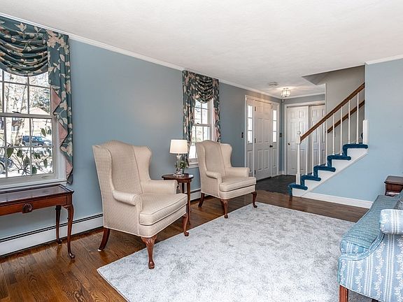 Love at first sight. A solid colonial with fantastic curb appeal that will only improve with the arrival of spring and blooming plantings.The attached 2 car garage has direct home entry. The recently paved driveway and walkway add to the appeal. Inside you will find all the ingredients for a wonderful home. The 1st floor has spacious rooms with gleaming hardwood. A large livingroom extends across the front. Ideally situated between the charming dining room and beamed family room with fireplace and wainscoting, the eat-in kitchen has warmth & appeal. The family room has sliders to a beautiful screened porch with cathedral ceiling and mahogany floor and the sunny deck. Four very comfortable bedrooms, include a king sized primary w/ ensuite bath and walk in closet. This home has space for quiet conversation and fun gatherings both inside and out. The basement awaits your plan to finish, adding value & space. Great neighborhood, a short walk to train and town and a short drive to Rte 128.