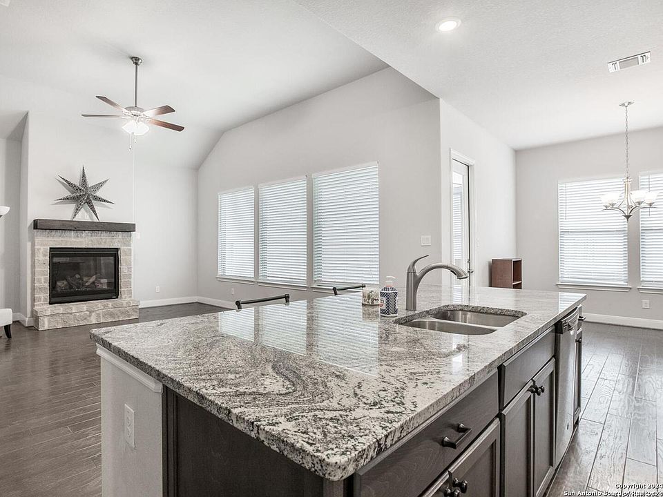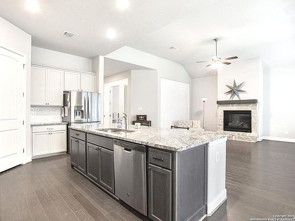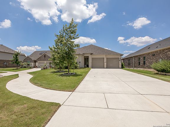 Just reduced with immediate possession available! Perfectly situated one story home on quiet cul de sac with extra long driveway - less than 10 minutes from downtown Boerne and easy freeway access to downtown San Antonio and International airport. House in new neighborhood with miles of sidewalks, luxurious pool, covered picnic area with playground, clubhouse with 24/7 workout room. Journey home builder is known for extra tall ceilings and doorways, wide accessible hallways and lots of natural light. Hardwood floors throughout main living areas and tile in bathrooms with huge mirrors. Separate walk in shower and soaking tub in master. Kitchen features all stainless steel appliances with extra tall cabinets, large island and granite countertops. Over $20k in upgrades to this house. Oversized covered patio added with hot tub plus flexible sand patio currently with fire pit. Entry way and garage features epoxy floors. Water softener included in garage with sink and extra overhead storage. Gutters added around home. Extra room enclosed with removable walls for more open feel along with a secret bookshelf door to access nursery or study space from master bedroom closet. All blinds on windows included. Come and see your new home!
