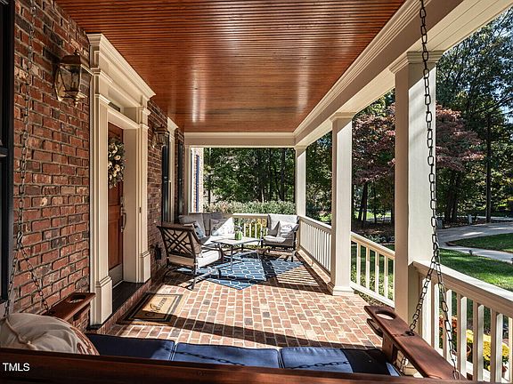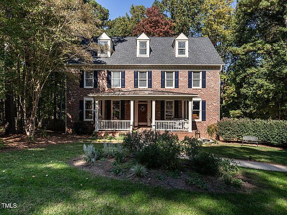 This comfortable and roomy 5 bedroom, 3.5 bath, all brick veneer home gives space for everyone to spread out. Delightful screened porch with skylights overlooking the beautifully landscaped in-ground, saltwater pool. Lower level Rec Room with fireplace also walks out to pool terrace. Renovations include beautiful primary bath with walk-in shower, updated Kitchen and Hardwoods throughout the main 2 levels of home. Large teen/bedroom suite on the 3rd floor as well as a walk-in unfinished attic area for great storage. Outside, a large fenced-in backyard provides ample room for activities, while the deep woods behind the property create a private, scenic backdrop. Unwind by the saltwater pool, watch goldfish swim in the peaceful pond from the oversized front porch, or gather around the cozy fire pit under the stars. With a spacious two-car garage, this home is as practical as it is beautiful, offering the perfect blend of comfort and nature. Located in the beautiful neighborhood of Wyndham in north Raleigh, it's convenient to I 540 and all of its connections, North Ridge area, The Forum and many other dining and shopping areas.