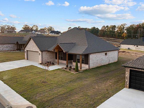 . Has extra landscaping, large covered back porch. Entry has 12 ft ceilings, Kitchen has walk in pantry with gas cooktop and wall oven, with large island over looking great room. Master has custom ceiling. Master bath has large tile shower. Homes has LVP flooring throughout.