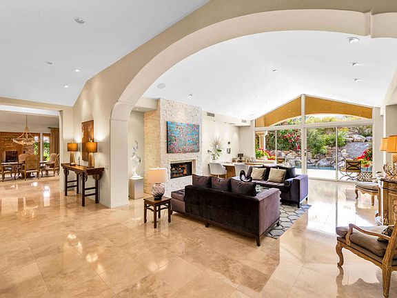 Discover this beautiful custom home blending elegance, privacy and tranquility in the coveted community of the Estates at Ironwood. Step inside to travertine flooring and an expansive living area featuring a striking fireplace, wet bar, and serene views of the pool and lush landscaping. The formal dining room, framed by French doors, opens to a covered patio with its own fireplace and comfortable seating--perfect for intimate gatherings under the stars.The inviting family room showcases custom-built cabinetry, designer furnishings, and a media center, creating a warm and stylish space for relaxation. The chef's kitchen is a culinary dream, complete with a spacious island, Wolf cooktop, Sub-Zero refrigerator and full-size freezer, Sub-Zero wine refrigerator, double ovens, and dual warming drawers. Just outside, a private, beautifully landscaped patio offers a peaceful retreat for morning coffee or evening unwinding.This luxurious home features three ensuite bedrooms, including a primary suite designed for ultimate comfort with a cozy fireplace and direct access to a covered patio boasting breathtaking views of Haystack Mountain. A guest suite opens directly to the pool and spa, while a third ensuite bedroom serves as a private casita with its own entrance--ideal for hosting visitors. A dedicated office provides a quiet space for work or study.Outside, your personal oasis awaits. Surrounded by mature landscaping for complete privacy, the heated pool and spa offer a tranquil setting for both relaxation and entertaining. Multiple covered patios provide inviting spaces for outdoor dining and lounging.With exquisite custom furnishings, impeccable craftsmanship, and stunning surroundings, this home is a true gem in the heart of Ironwood.