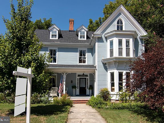 Welcome to 113 High Street, a beautiful home on historic High Street, just one block from the banks of the mighty Choptank River, the glowing lighthouse and the extensive marina! Built in 1877, this architectural specimen showcases a lovely center foyer, graceful staircase and 4 flue-lined, wood-burning fireplaces. The fireplaces are located in the Living Room, the Dining Room, the Primary Bedroom and the office/bedroom with the balcony. Additionally, it has numerous built-ins including a Dining Room corner cabinet and Living Room bookcases. The tall ceilings on the first floor are emphasized by beautiful crown molding. The wrap-around front porch is absolutely delightful and the second floor balcony affords one a glimpse of High Street and a filtered view of the Harbor. The kitchen nook overlooks the side yard and the family room has a full wall of sliding glass doors overlooking a deck and highlighting the beautiful back yard w/ a brick patio. Off the kitchen is a large, intimate screened-in porch perfect for eating crabs and extended family dinners. The second floor has 4 bedrooms and an office with a fabulous private balcony. The office could also serve as an additional bedroom or an upstairs den/library. The second floor has 2 baths...one primary and one shared by the other bedrooms. The third floor has a large bedroom as well as a large game room complete with pool table and an eagle's eye view of the river and the harbour! This house has a 250 SQ FT basement accessed from inside the main floor. The gas-fueled boiler and hot-water heater are conveniently located in the basement and easily accessible. There is additional storage space in both the basement and in the attic above the second floor rear bedroom. There is an outbuilding located in the back yard that serves as a work shop on one side and a separate garden shed on the other side. Sited on .39 of an acre, this house enjoys spacious front and back lawns, fully fenced in back, while still being within walking distance of the downtown, the waterfront as well as the iconic Cambridge Yacht Club.