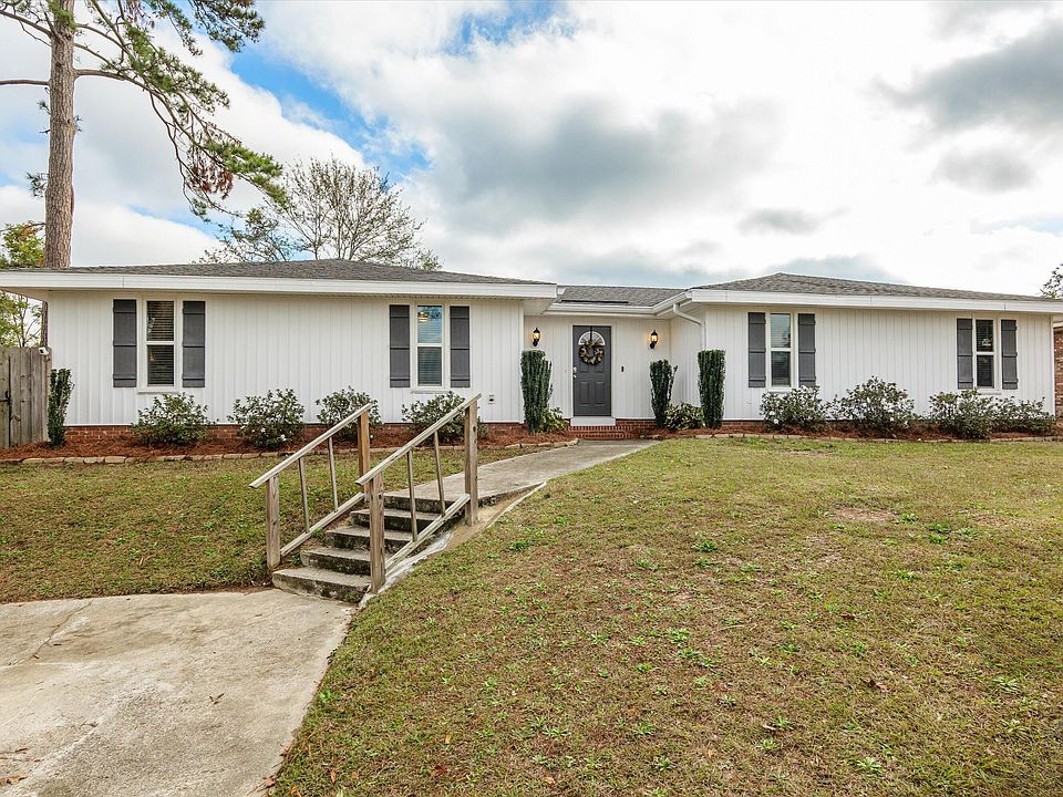This updated one story 3 bed/2 bath home boasts beautiful LVP floors, newer fixtures, and open concept living. The oversized great room is sure to impress with an area perfect for that work from home space. Dining room features a brick white washed wood burning fireplace and flows directly to the great room and kitchen. The kitchen includes granite countertops, subway tile backsplash, stainless finishes and pantry. The Primary suite has exterior access through French doors, and the private bathroom features custom made dual vanity, and tiled shower. The guest bedrooms, updated hall bath, and laundry room with exterior access complete this wonderful home. The back yard with a double patio and privacy fence is the perfect space for outdoor recreation, entertaining and relaxing! The home is located on a cul-de-sac street and is convenient to schools, shopping, medical facilities, and Fort Eisenhower.