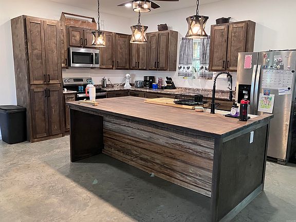 Ready to live the Country Dream on 9 Acres? Imagine waking up in a brand-new 2024-built home surrounded by peace, privacy, and room to roam. With nearly 2,000 sq. ft. of living space, this 3-bedroom, 2-bath home offers modern comfort in a country setting. Step inside to an open living room and kitchen with custom cabinets—perfect for gatherings. The spacious master suite features dual walk-in closets, a tiled walk-in shower, and double vanities. Outside, you’ll find the best of both worlds: pastureland for chickens, goats, horses, or any other critter your heart desires, and wooded acreage full of deer and wildlife. Sit back and relax on the large covered back patio, or work in the 18X20 shop. A metal carport also conveys. This is the one you've been waiting for, so book a showing today! Agents, see remarks.
