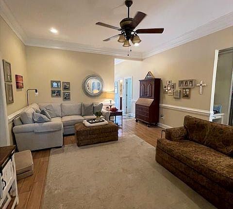 Crown moldingWalk in primary showerMature professionally landscaped backyardWalk in pantryBeautiful kitchen with islandSplit bedroom floor planInviting screened porch