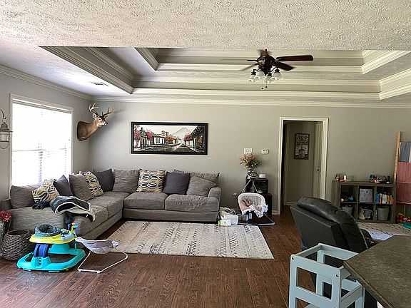 Find peace and quite right here on this one acre lot that backs up to woods and has lake access! Split floor plan. Master is large w/walk in closet in master bath. Double tray ceilings in master & living. Kitchen has lots of cabinets & countertops. Breakfast bar. Kitchen/dining combo. Great paint colors. Carpet in bedrooms 4 yrs old. Hand scraped hardwoods. Open concept for living/kitchen/dining area. Beautiful lot with tons of parking and a shop ready concrete pad. Nice deck off the back. see attached