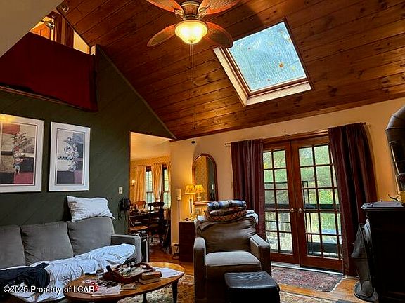 Lovely contemporary of gracious architectural layout features, vaulted ceilings with skylights, New England barnwood for floors, and two story stone mantle. WALKOUT LL features sliders with wall of glass, sink and utility area. Sep. entrance for a home business with private foyer. This secluded park like setting is Nestled on 11.2 acres with pond, 2 stall horse barn, 2 det. Garages.