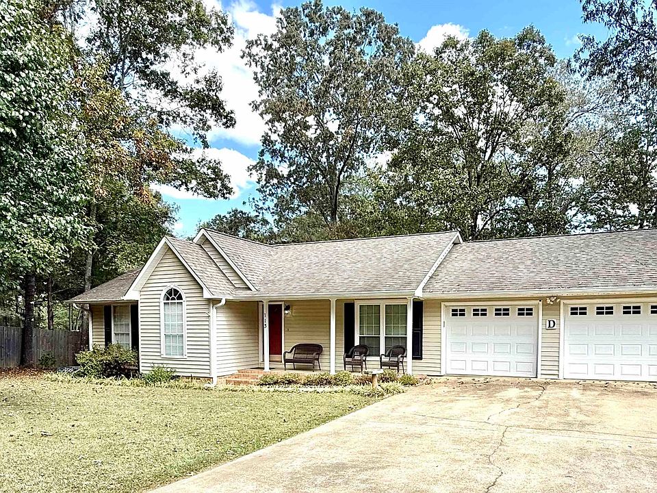 This cozy 3-bedroom, 2 bath home offers the perfect blend of comfort and convenience. Featuring an open concept layout, the spacious living area flows seamlessly into the kitchen. The master suite features a private bath with double sinks and jetted tub. Outside, enjoy the large back deck that overlooks a spacious back yard-ideal for relaxing, grilling or gathering with friends. The large 2 car garage has plenty of storage and a built-in workbench. Located inside the city limits, this home truly offers the best of comfort, convenience and charm. New flooring in living area! HVAC was replaced in 2022. Don't miss this one!! MORE PICS COMING SOON!