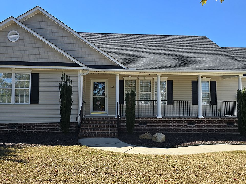 Welcome home to this charming ranch in the Walkers Ridge Subdivision! The inviting rocking chair front porch sets the tone for relaxed living. Inside, youll find an open living space with hardwood floors throughout the den, kitchen, and dining areas, creating a warm and functional layout. The home features three bedrooms, including a primary suite with a walk-in closet, double vanity, separate shower, and soaking tub. A bright sunroom overlooks the private, fenced-in backyard, offering a peaceful space for relaxing. The oversized two-car garage provides extra storage, while the property's convenient location near Clayton and McGee's Crossroads ensures easy access to local amenities and major highways. Renter pays for utilities - no smoking