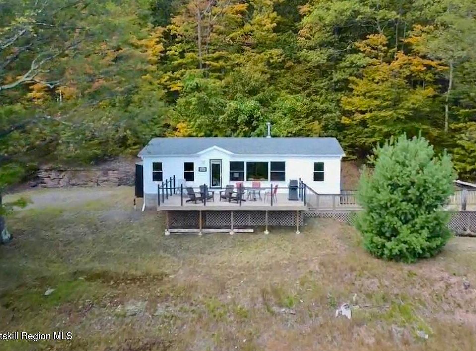 Hudson Valley Panoramic Views - 18.61 Acres with Additional 64 Acres of land Available. Enjoy complete privacy and breathtaking Hudson Valley views from this beautifully remodeled manufactured home on 18.61 acres. Featuring 3 bedrooms, 2 baths, the home was fully renovated in 2014 with warm knotty pine walls, an inviting open kitchen and living room, and a cast iron wood stove perfect for cozy evenings. Relax on the front tiered deck designed to maximize the incredible views. Updates include new windows, a roof and gutters only 2 years old, plus central air for year-round comfort. An additional 64 acres bordering state land is also available for 200,000, offering endless recreation potential. The acreage includes a 50-foot right of way through the subject property for access. Tax map #184.00-2-1. Please note: this home is not on a town-maintained road, and there is no road maintenance agreement in place. Don't miss this private Hudson Valley retreat with unmatched views and room to expand!