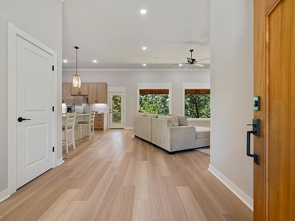This nearly-new home sits on a half-acre lot in the highly sought-after Lake Forest Shores Subdivision. Featuring 4 spacious bedrooms, 2 bathrooms, and a separate office/dining room, you'll love the open, airy floor plan. The stunning kitchen catches your attention with a waterfall quartz countertop and beautiful modern cabinetry. The private master suite includes a generously sized walk-in closet, gorgeous tile work, and a soaker tub. The expansive covered back porch features a custom wood ceiling - and as a bonus, you'll find a dedicated storage space under the house—ideal for mowers, tools, and outdoor equipment. Enjoy added privacy with no neighbors to the right (and never will be), along with a surprising amount of deer and other wildlife in the backyard—rare for a subdivision. Built with energy efficiency in mind, this home averages just $120/month for electricity. Located only half a mile from a private boat ramp, this property is perfect for lake lovers also. What a wonderful place to call "home".