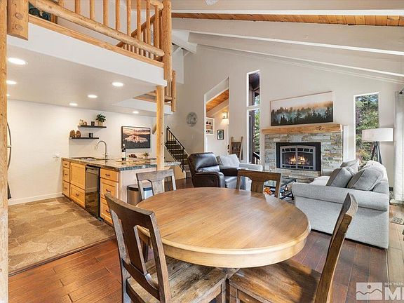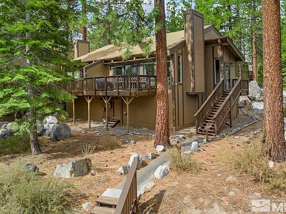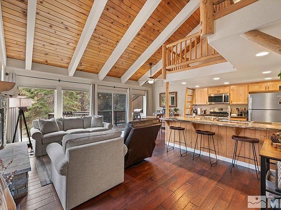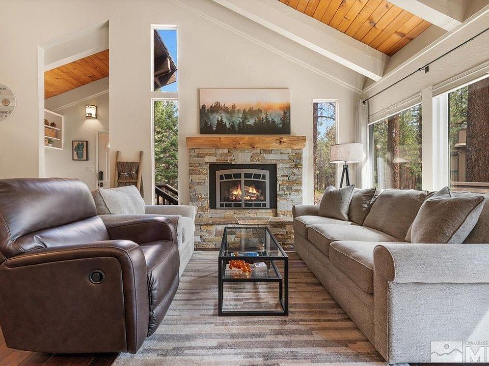 Enjoy beautiful forest views from this mountain modern retreat that borders US Forest Service land and is only steps away from the trailhead! Sold fully furnished for a true turn key experience. Featuring updated interiors, and breathtaking natural surroundings, this property offers mountain living at its finest. The open-concept living features a vaulted ceiling and large windows that flood the space with natural light, while the warm wood plank ceiling captures the essence of Tahoe., The well-appointed kitchen boasts granite countertops and stainless steel appliances. The upper primary bedroom offers a vaulted ceiling, en suite bath, and private deck overlooking the tranquil forest, while the lower bedroom features a custom built-in bunk with a king size bed and 2 twin beds. There’s even a loft, perfect for additional sleeping arrangements. Central AC ensures comfort during the summer months, while the gas log fireplace offers a cozy retreat in the winter. A large storage area is located beneath the home, where you can store bikes, paddle boards, and so much more. Lake Village is a sought-after neighborhood that provides a range of amenities that elevate your lifestyle. You'll find a variety of amenities that include a clubhouse with a ping-pong table, fire pit, seasonal pool, year-round outdoor spa, dry sauna, tennis and pickle ball courts. Additionally, snow and trash removal services are provided. Beyond the property's boundaries, you'll have access to a wealth of year-round recreational activities. Explore nearby world-class ski resorts, hike the scenic trails, or engage in thrilling water sports on the pristine waters of Lake Tahoe. It's the perfect retreat after a day of outdoor adventures. Don't miss the opportunity to experience the best of Lake Tahoe living and schedule a showing today!