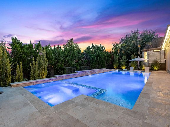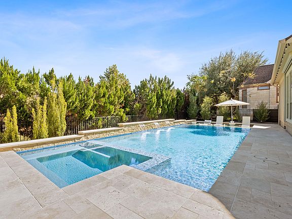 A Resort Sanctuary Beyond Compare - Where every day feels like a vacation & every evening ends in tranquility. Behind the gates in The Ridge at Alta Vista, this residence transforms the concept of home into an experience of leisure & luxury. Step into the backyard, & it’s clear this is no ordinary Lakeway property. The outdoor living space was designed as a private resort. A sparkling pool w/ cascading waterfalls takes center stage, framed by a tanning ledge & oversized spa for 12. Elegant travertine decking throughout, leading to an outdoor kitchen w/ leathered granite counters, a 40” Blaze grill & power burner, & dual Summit refrigerators. As the sun sets, a custom fireplace warms the air while an outdoor projection screen turns the pool into an open-air theater for dive-in movies. Lush greenery & soft astroturf maintain beauty w/o upkeep, making this backyard the heart of the home. Inside, refinement continues beneath 20-foot ceilings, where natural light & rich hardwood floors define the main living area. The chef’s kitchen features GE Profile appliances, a KitchenAid dishwasher, professional gas cooktop, expansive island, under-cabinet lighting, & custom soft-close pull-out shelving. The primary suite offers a sanctuary of calm w/ crown molding, tray ceiling, & plantation shutters. Its spa-inspired bath features elegant finishes & a soaking tub, while the expansive walk-in closet completes the retreat. Three additional bedrooms & an office share the main level, while the upstairs loft w/ built-in desk offers flexible space for study & play. Meticulously maintained, the home includes a new roof ('24) w/ solar vents, HVAC for the bdrm wing ('23), dual water heaters, Rachio irrigation, water softener, & insulated three-car garages. Smart features—Ring cameras, Nest thermostats, motorized shades, & an intelligent security system—ensure comfort & peace of mind. At night, programmable Trimlight illuminates the architecture in color, celebrating every season in style.