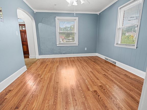 Charming brick Cape Cod style Home. This property offers the best amenities of in Town living with public water, public sewer and trash pick up but the property is actually located out of town limits! Well maintained 3 bedroom 1.5 bath is ready for you to call Home! Cozy Living Room includes gas fireplace. Formal dining and country kitchen with appliances remaining. Side porch and back deck provides 2 wonderful areas to enjoy quiet mornings and relaxing evenings. Full basement is perfect for storage. Detached garage and additional outbuildings for extra storage or hobbies. Equipped with a Generac generator for peace of mind during power outages