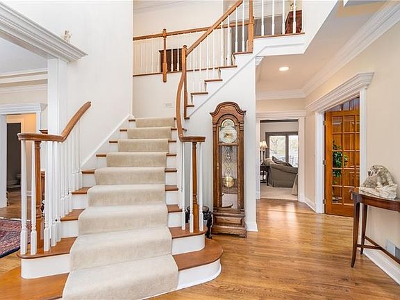 Updated home-North Park Manor will knock your socks off! Gorgeous curb appeal w/Governor's drive-2nd front entrance that opens to mud and laundry room, rear staircase. Guests are treated to a grand 2-story front entry with a sweeping staircase, hardwood underfoot. Numerous updates include mechanicals such as roof, windows and a show-stopping kitchen, professionally designed. Signature cabinetry w/custom drawers, an 8ft island w/hidden outlets, 2 beverage drawers, prep sink and seating, and Wolf range w/double ovens and more are a treat for the cook & family. The detailing of each room is exquisite; find a study behind French doors w/Judges paneling, built-ins, accent lighting, a dining room with wainscoting, crown molding, and ceiling medallion, and a front-facing living room, all boast Plantation shutters. Huge LL accommodates all family members in size & space. Separate storage rooms, craft room, 2 sliding doors out to the patio & views of woods & rolling hills beyond.