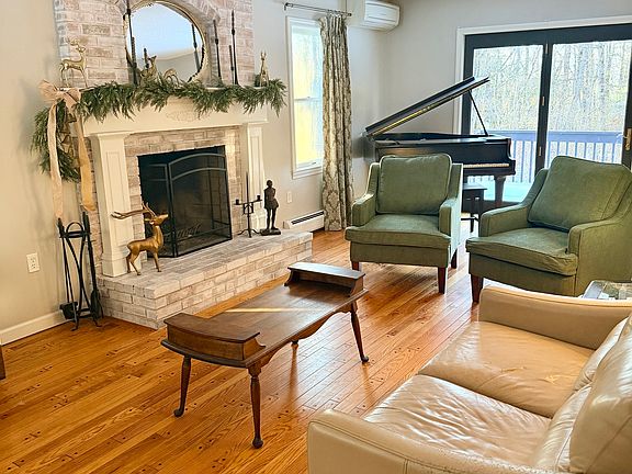 Nestled on a quiet, well-maintained dirt road just minutes from highway access, this timeless 3 BD/2.5 BA home offers the perfect blend of country serenity and modern convenience. The inviting interior features a cozy living room centered around a beautiful fireplace, dining room with bay windows offering ample light and views of the backyard, and a kitchen open to the family room, perfect for spending time with family or entertaining. Downstairs, a spacious basement rec room provides the ultimate hangout spot for kids or hobbies, complemented by the convenience of a two-car garage and the treehouse of any kid's dreams. The outdoor living is truly second to none; you can enjoy your morning coffee on the picturesque wraparound porch or host summer barbecues in the secluded backyard, and all this is bordering the scenic trails of Nipmuck State Forest.