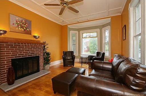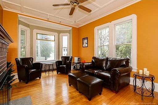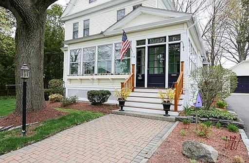 YOU WILL ABSOLUTELY LOVE THIS NEW ENGLAND CHARMER, LOCATED IN THE LIBRARY AREA. Imagine sitting in your wrap-around porch with ceiling fans and beautiful fir flooring this summer and just relaxing. Wonderful period detail inside. The kitchen has a bay window, extra tall cabinets to the ceiling for extra storage, granite counters, stainless steel appliances and a beautiful backsplash. Living room with fireplace and stained glass window open to dining room with custom cabinet and access to deck. Cozy den with ceiling fan. Second floor has master bedroom, full bath with tiled tub and shower, additional good size bedroom and a large laundry room. Third floor has two additional bedrooms. Two-car garage, updated windows and roof and fenced-in yard with garden area make this home complete!!