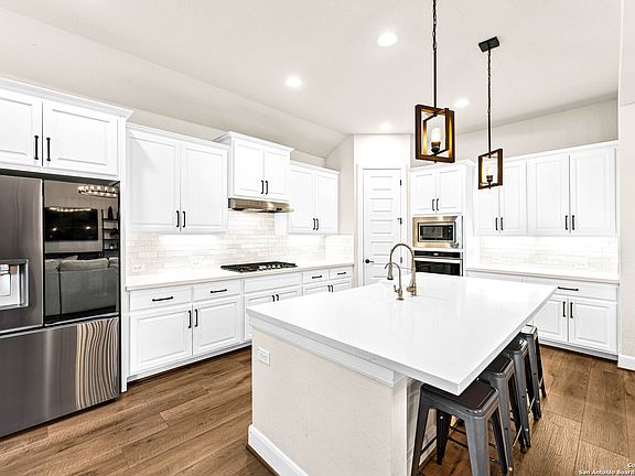 Welcome to 113 Milagro. Built by Scott Felder Homes in 2021 and backing to a peaceful greenbelt, this 2,813-square-foot home is sure to impress. Inside, you'll find 4 spacious bedrooms, 3 baths, an inviting office, and a versatile flex room. The kitchen is beautifully finished with quartz counters and opens to the living and dining areas. Two secondary bedrooms share a Jack-and-Jill bath, while the third offers its own private space for guests. The primary suite overlooks the back yard and has a generously sized bathroom with dual closets. Step outside to a covered patio, an outdoor kitchen, and a private yard with a horseshoe pit/bocce ball area and plenty of room to relax or entertain-perfectly framed by the greenbelt behind you. If you're familiar with Esperanza, you know that the community is comprised of "pods" or "villages". Milagro is its very own gated village, known as Soledad, offering an extra level of privacy and exclusivity. Any home on Milagro is a prized find, but 113 Milagro, along with the green space behind it, makes this home extra special. Gated, quiet, and incredibly sought-after. Pair that with a location just steps from the resort-style amenities-lazy river, splash pad, fitness center, dog park, and miles of walking trails-along with a neighborhood elementary in Boerne ISD, and it's easy to see why this community and this home stand out. Just 5 miles to Downtown Boerne and 30 minutes to the San Antonio airport, the location couldn't be easier for commuting, school, or weekend plans. If you're looking to move within Boerne or make the jump from San Antonio, this home brings together privacy, comfort, and community in all the right ways.