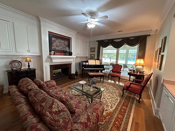 Fabulous golf course home on hole 16 has a lake view. The living room, den and bedroom have a fireplace with gas logs. This home is designed for casual and formal living. The amazing library has two walls with built-ins and bookcases. The kitchen has two islands and an abundance of cabinets and upgraded appliances. The bonus room with bath offers a private suite. The full width screen porch offers additional space for large family gatherings and entertaining. A membership is available.